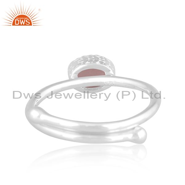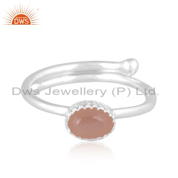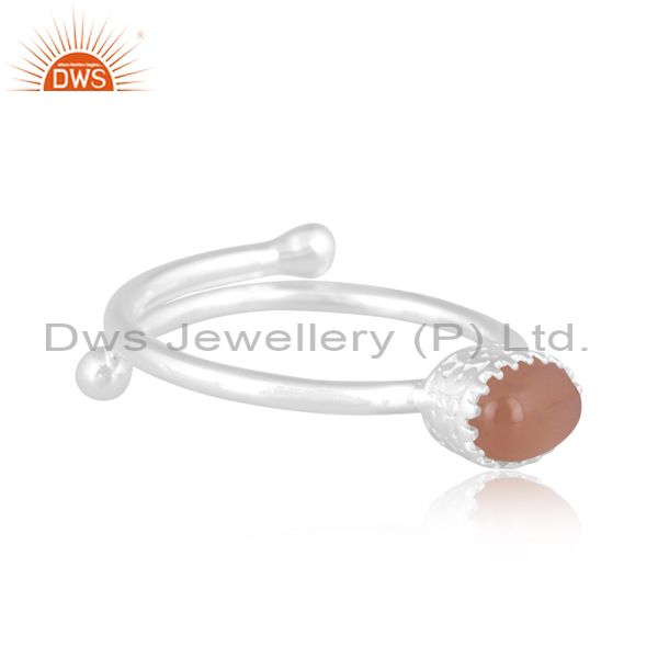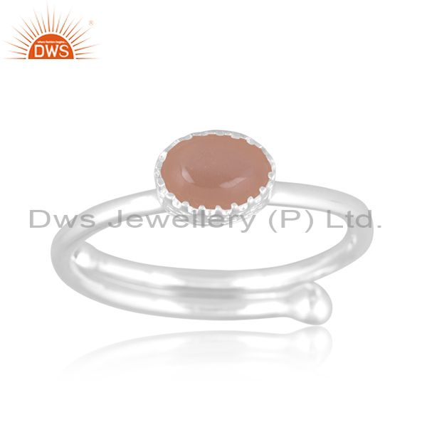 Oval Cut Peach Moonstone Set Fine Sterling Silver Crown Ring