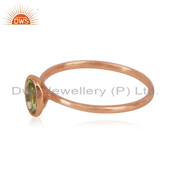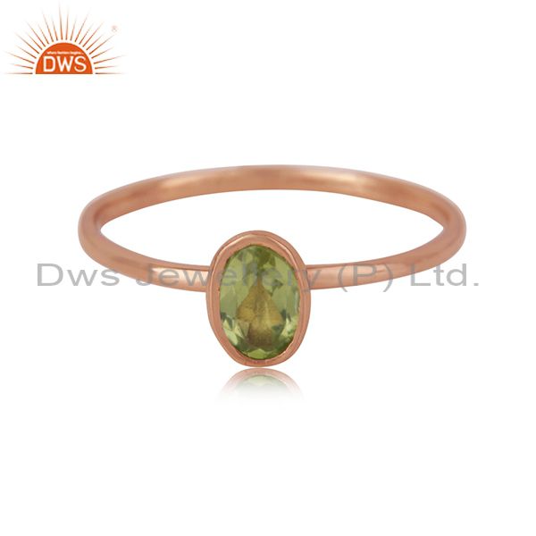 Oval Cut Peridot Gemstone Rose Gold Plated 925 Silver Ring Manufacturer Jaipur