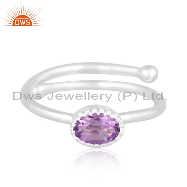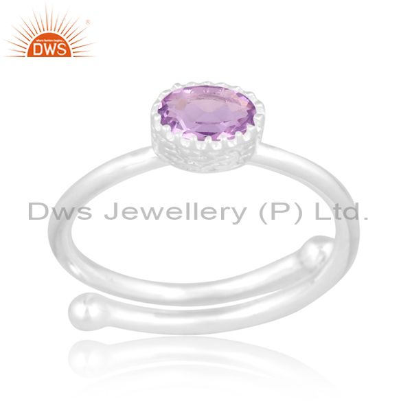 Oval Cut Pink Amethyst Set Fine 925 Silver Crown Twist Ring