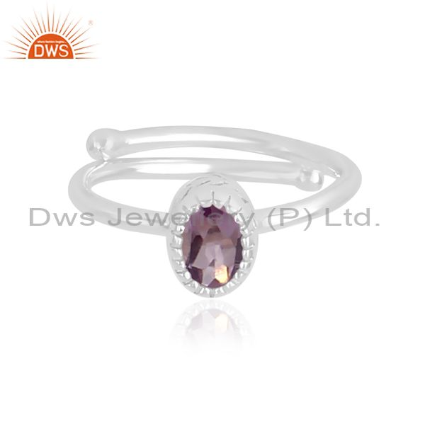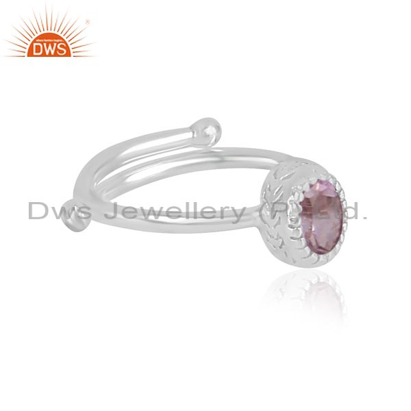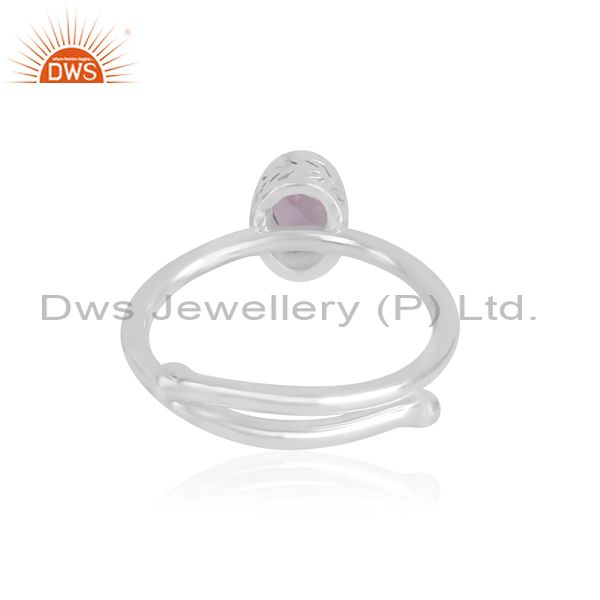 Oval Cut Pink Amethyst Set Fine Silver Handmade Fancy Ring