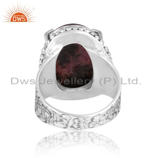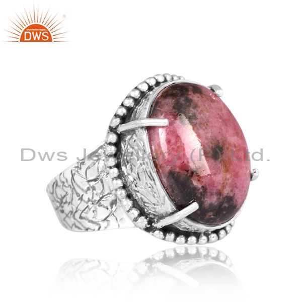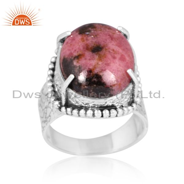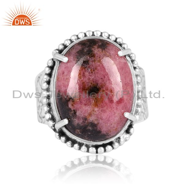 Oval Cut Rhodonite Set Oxidized 925 Sterling Silver Ring