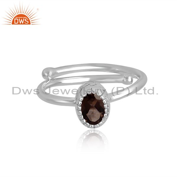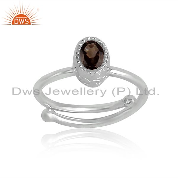 Oval Cut Smoky Set Fine Sterling Silver Handmade Fancy Ring