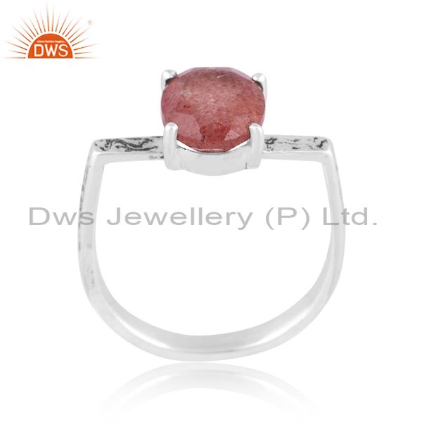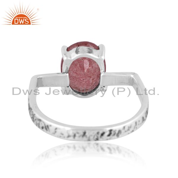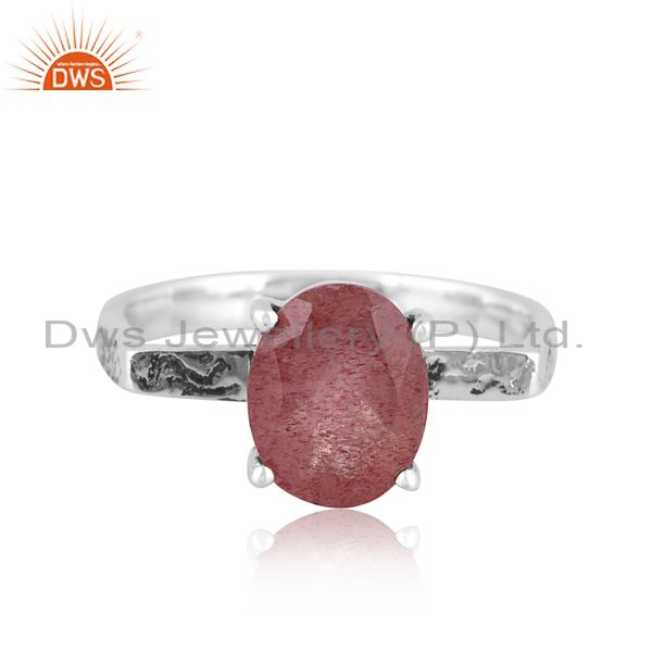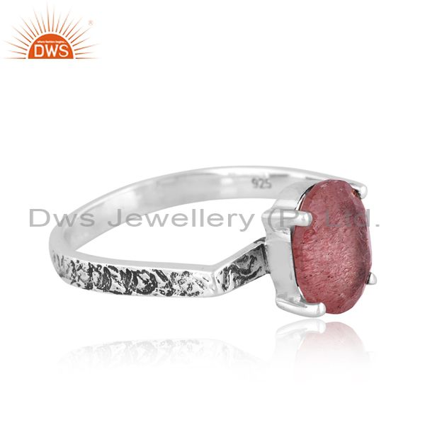Oval Cut Strawberry Quartz Set Oxidized Sterling Silver Ring