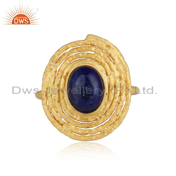 Oval Design Gold Plated 925 Silver Lapis Lazuli Gemstone Rings