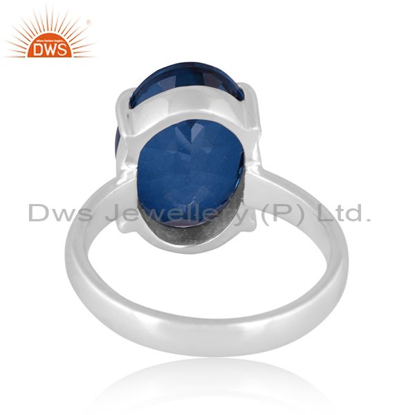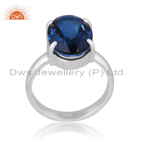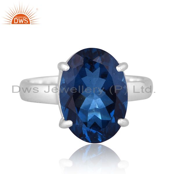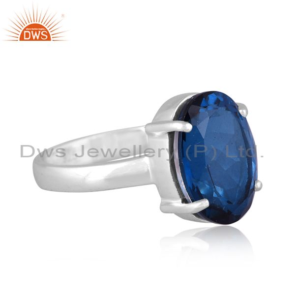 Oval Doublet London Blue Topaz Quartz Set Fine Silver Ring