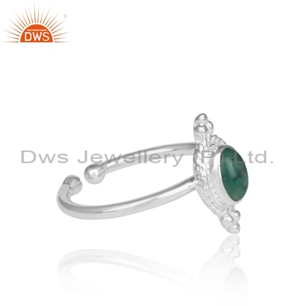 Oval Emerald Set Handmade Fine 925 Silver Adjustable Ring