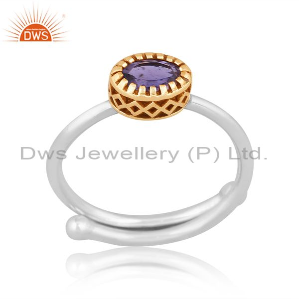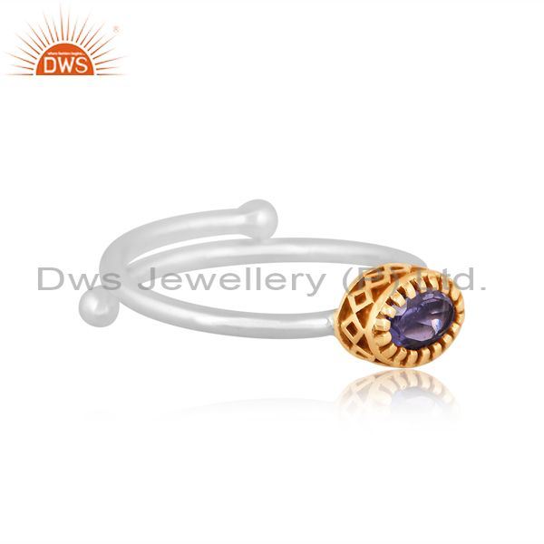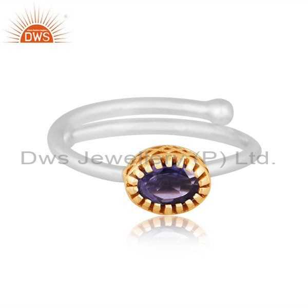 Oval Iolite Set Gold On Fine 925 Sterling Silver Classy Ring