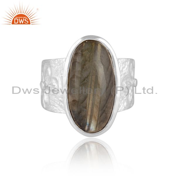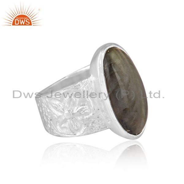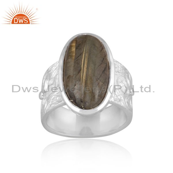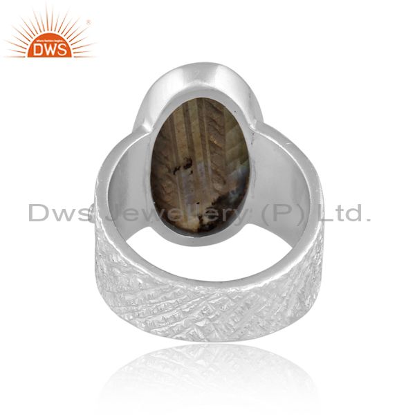 Oval Labradorite Set Fine Sterling Silver Designer Ring