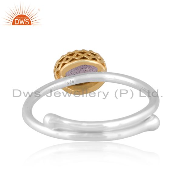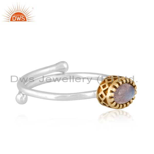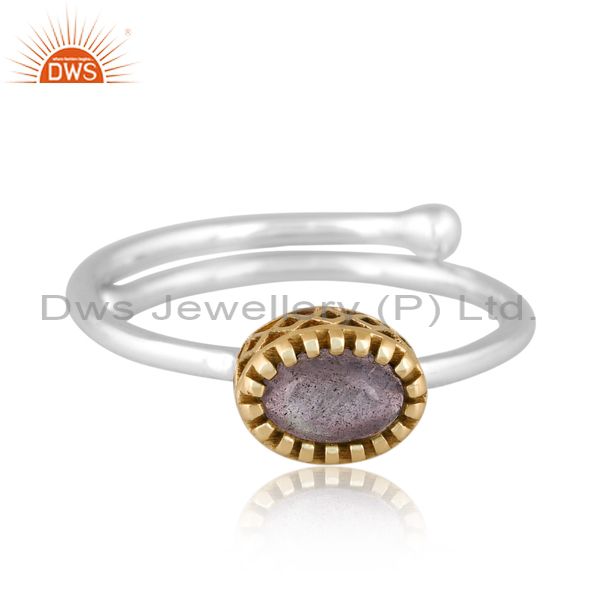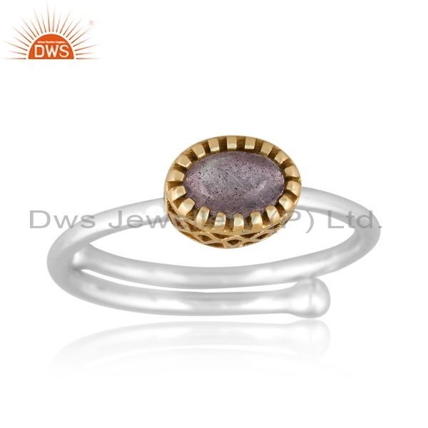 Oval Labradorite Set Gold On Fine 925 Silver Classy Ring