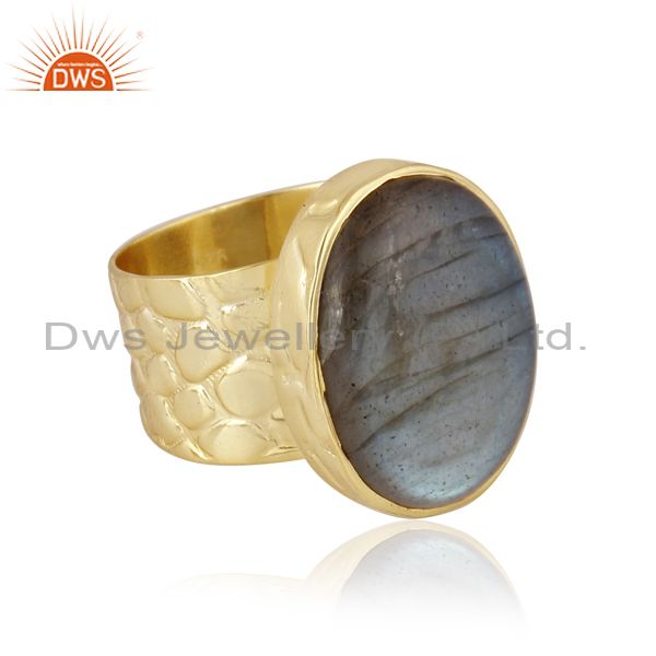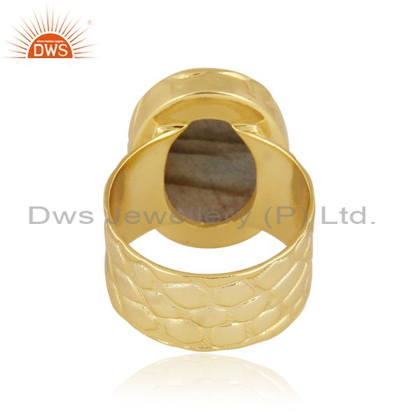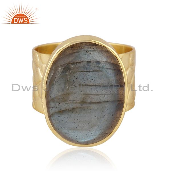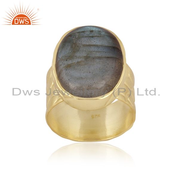 Oval Labradorite Set Gold On Sterling Silver Band Type Ring