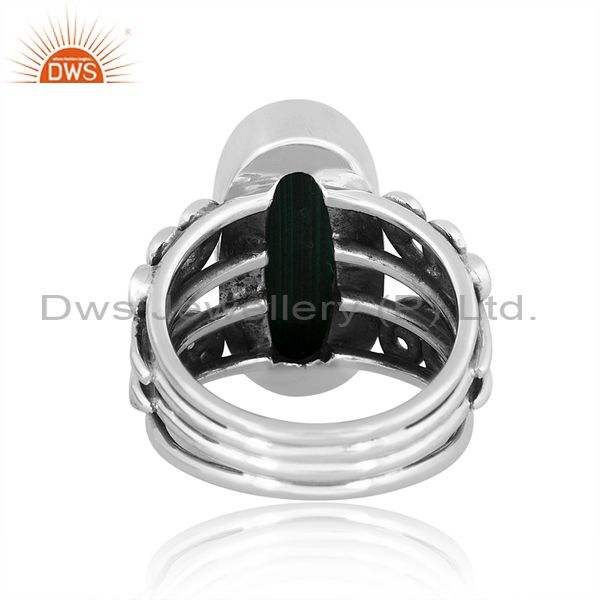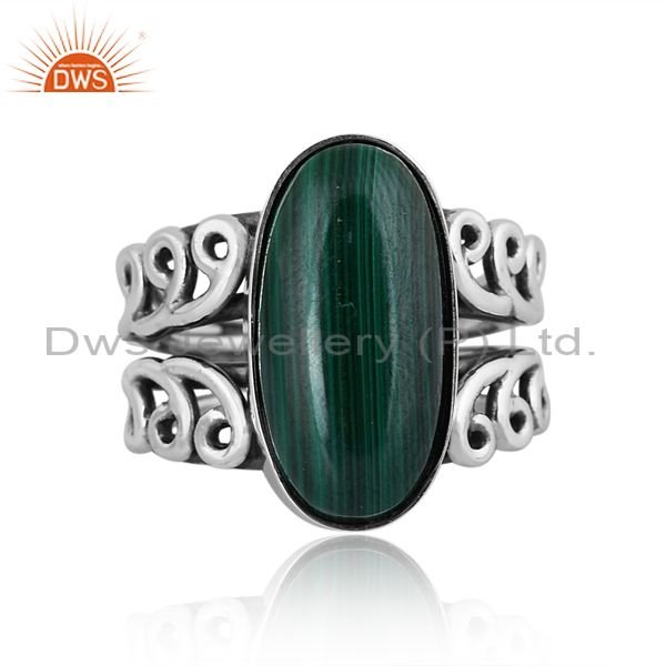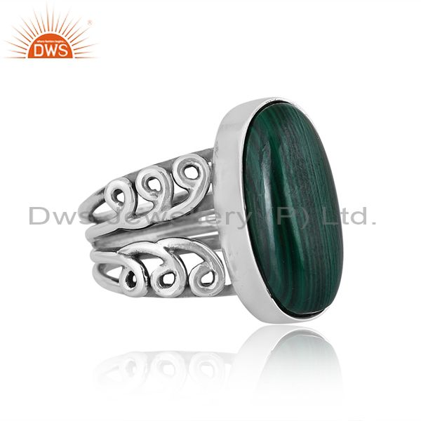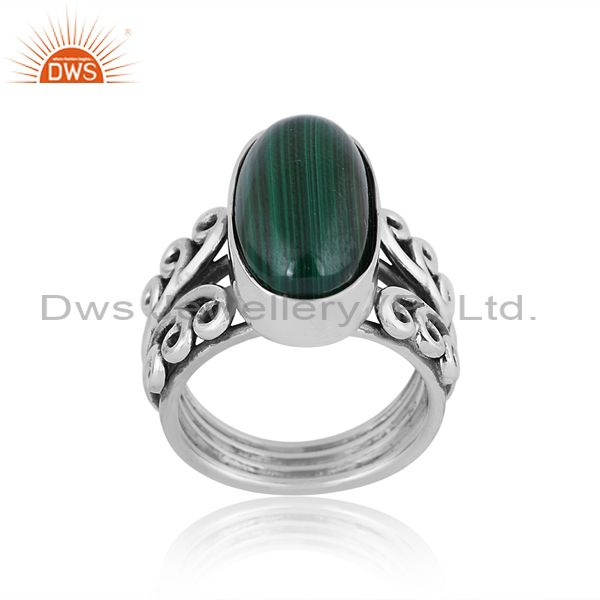 Oval Malachite Set Oxidized Silver Intricate Designer Ring