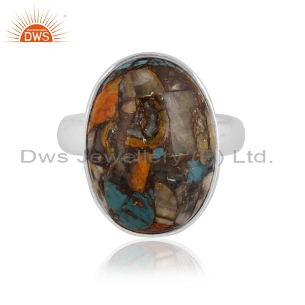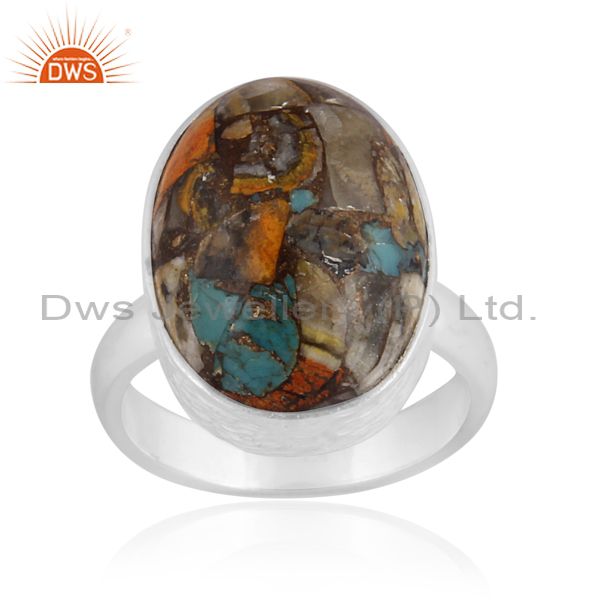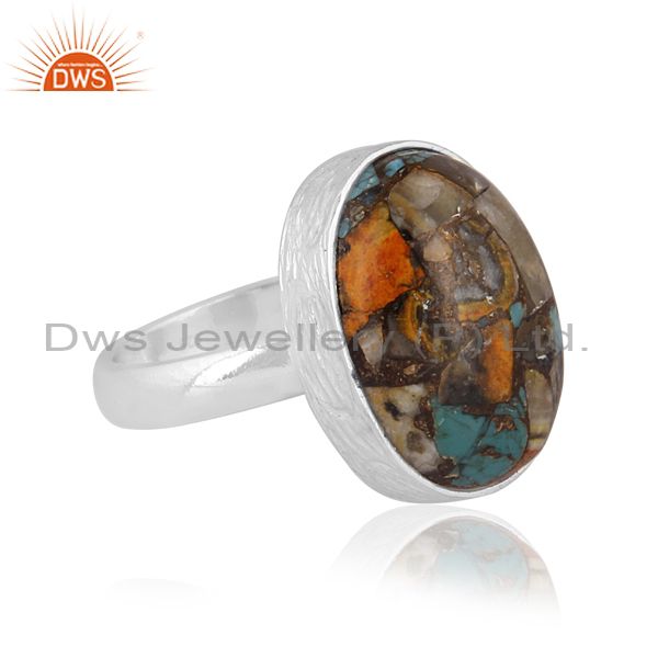 Oval Mojave Copper Bumblebee Turquoise Set Fine Silver Ring