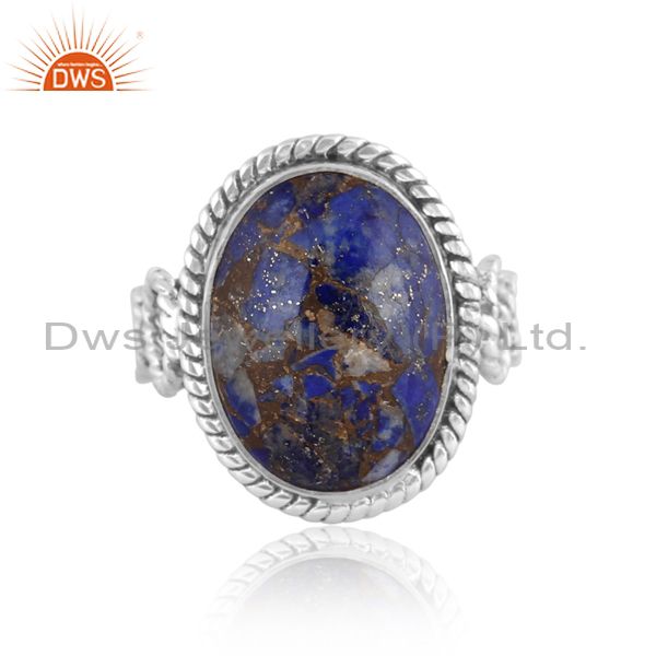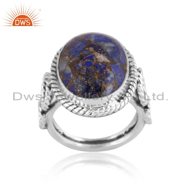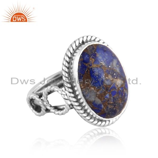 Oval Mojave Copper Lapis Set Ethnic Fine 925 Silver Ring