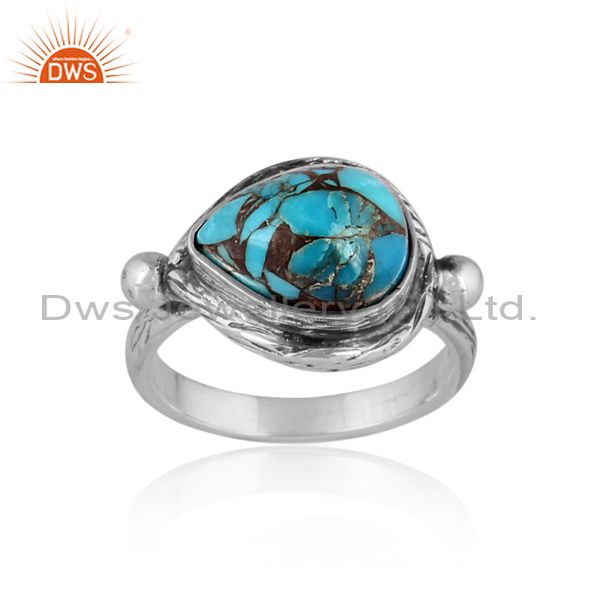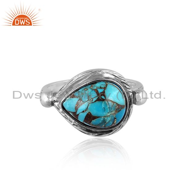 Oval Mojave Copper Turquoise Set Oxidized Silver Ethnic Ring