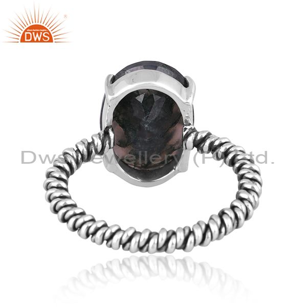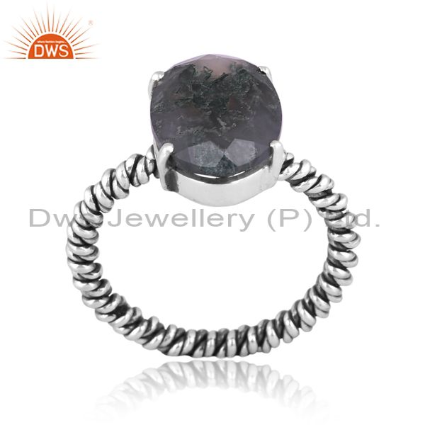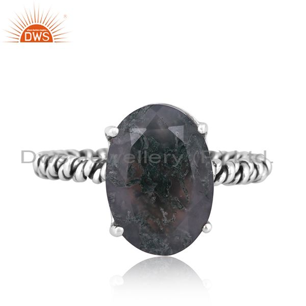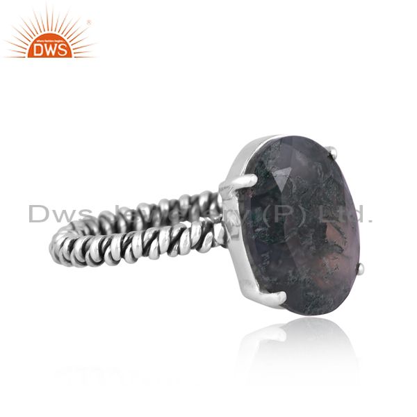 Oval Moss Agate Set Oxidized Sterling Silver Twisted Ring