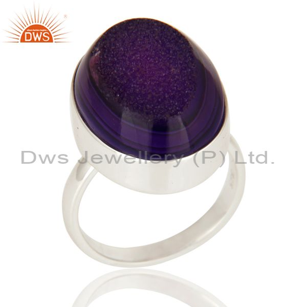 Oval Purple Drusy Agate 925 Sterling Silver Statement Ring