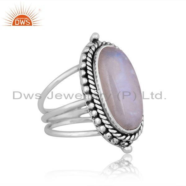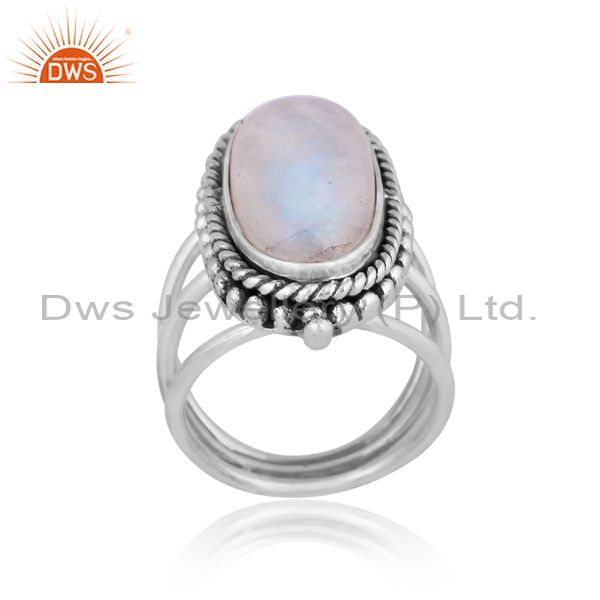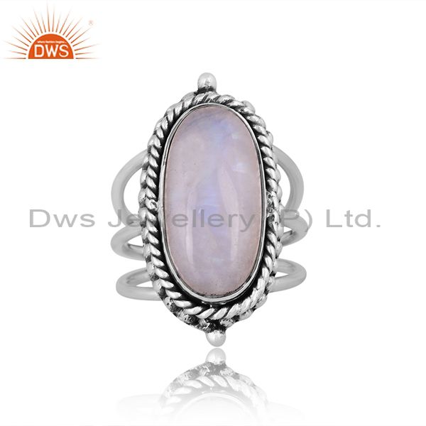 Oval Rainbow Moon Stone Oxidized 925 Silver Handmade Ring