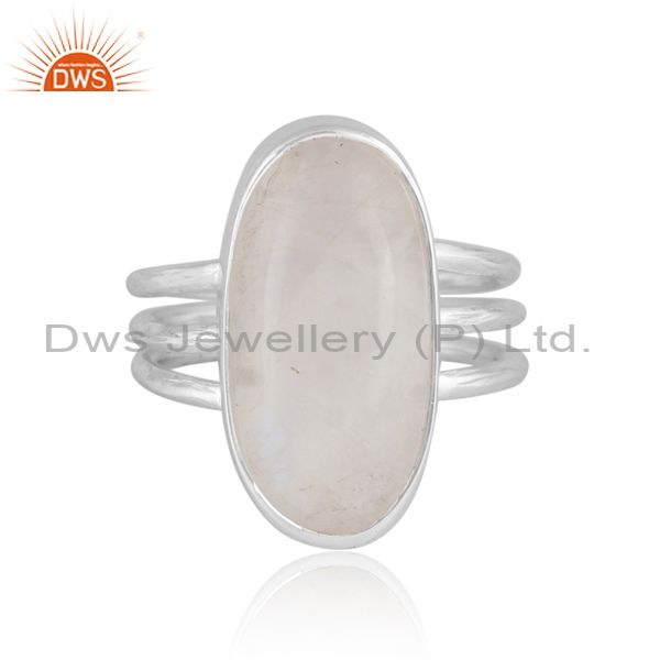 Oval Rainbow Moon Stone Set Fine Sterling Silver Classy Ring
