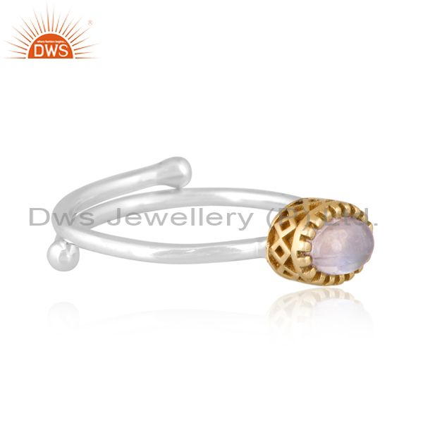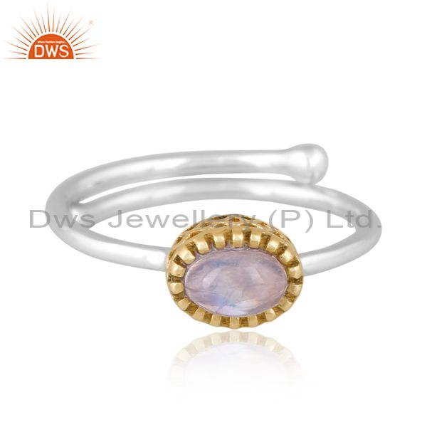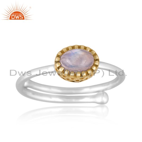 Oval Rainbow Moon Stone Set Gold On Fine Silver Classy Ring