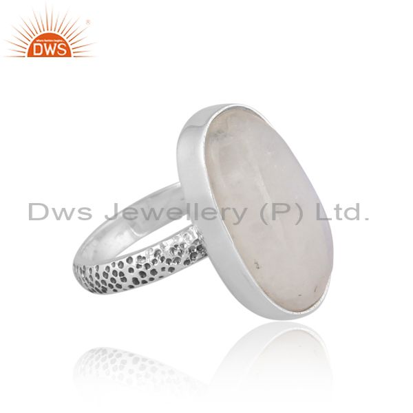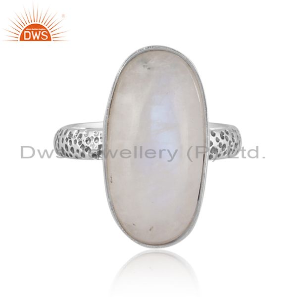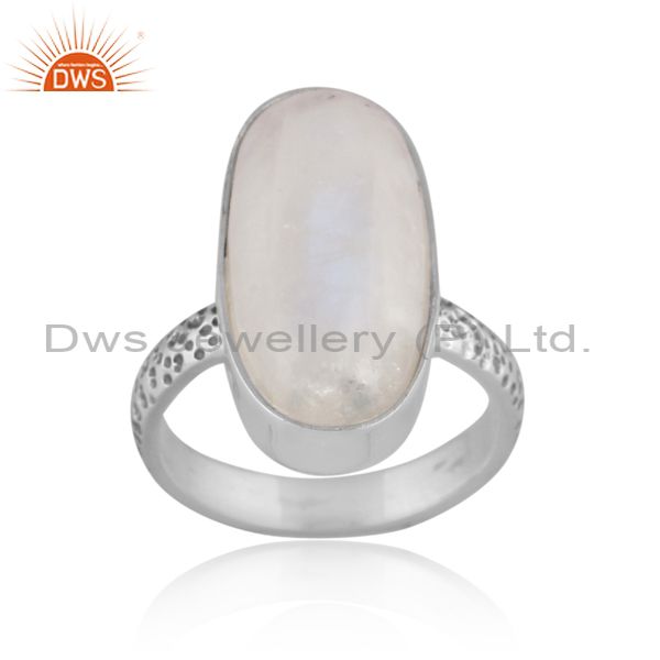 Oval Rainbow Moon Stone Set Oxidized 925 Silver Classy Ring