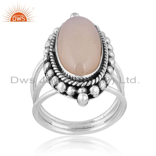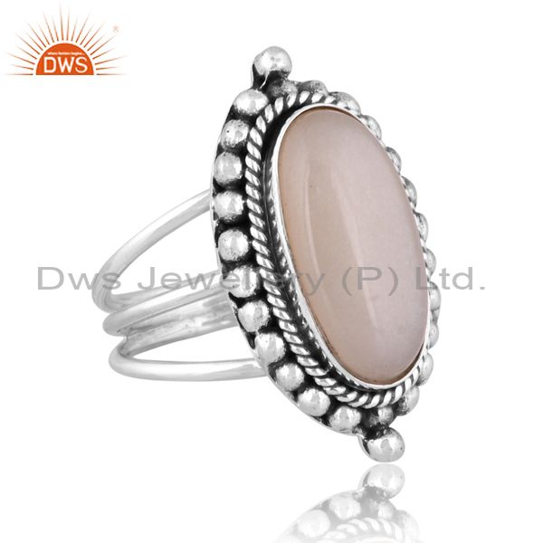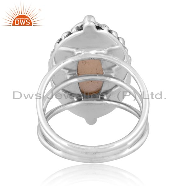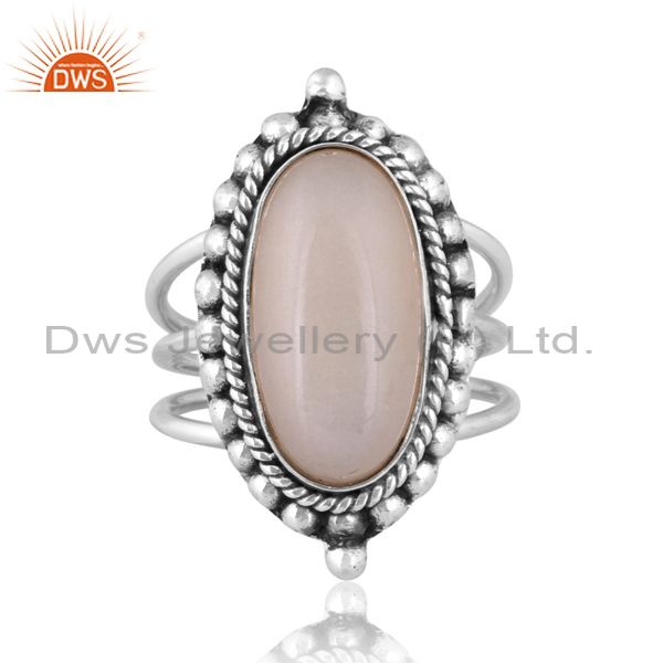 Oval White Moon Stone Set Oxidized 925 Sterling Silver Ring