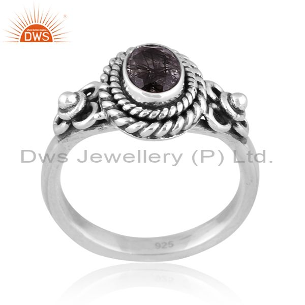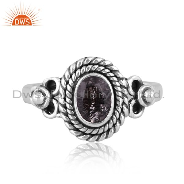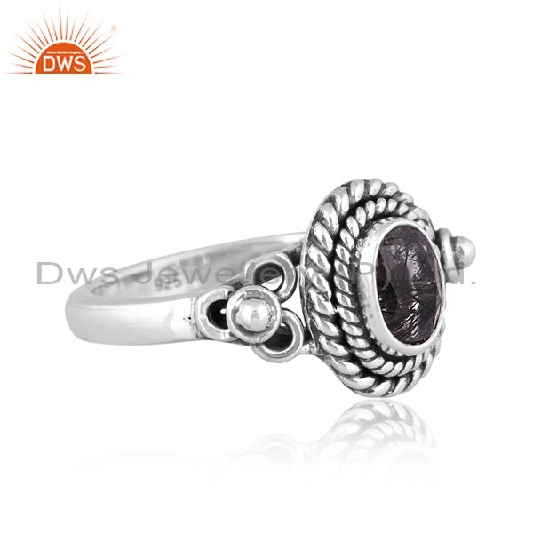 Oxide Sterling Silver Round Cut Black Rutile Designer Ring