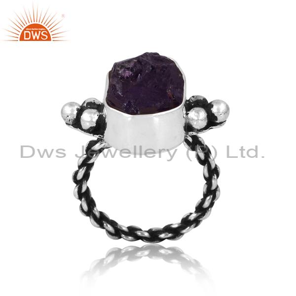 Oxidized Amethyst Engagement Ring: Unshaped Beauty