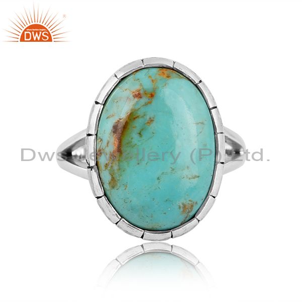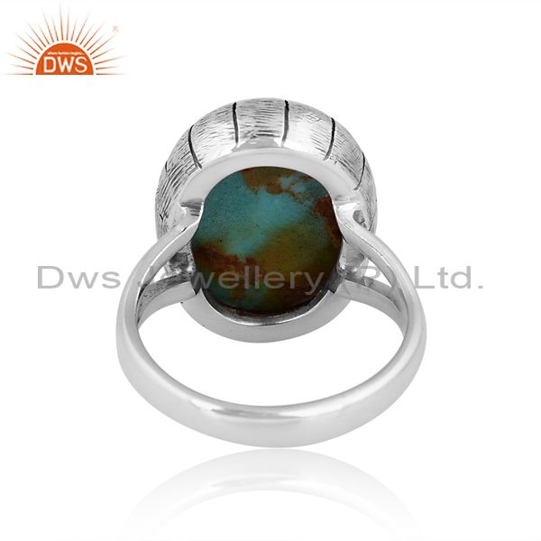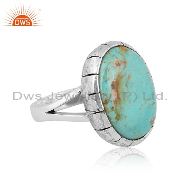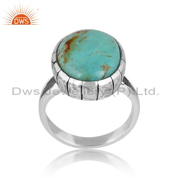 Oxidized Shank Texture Silver Ring With Turquoise Stone