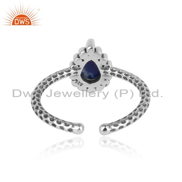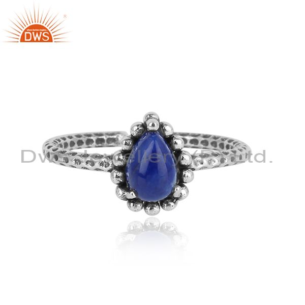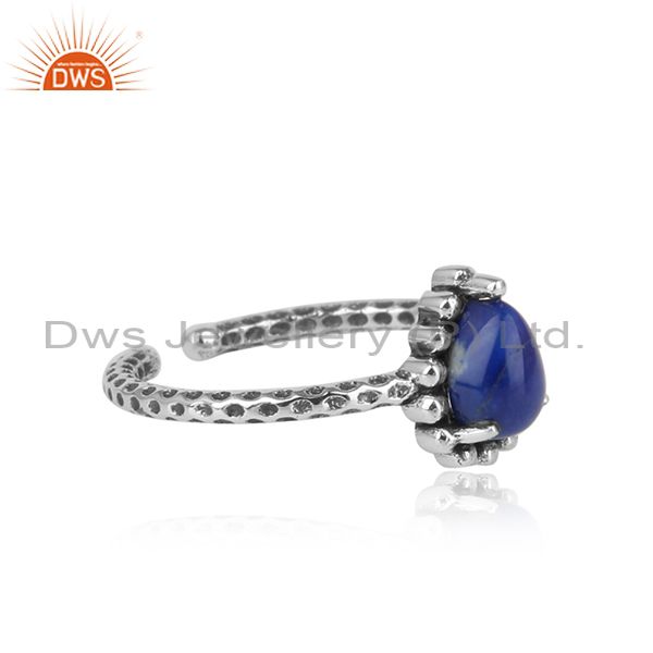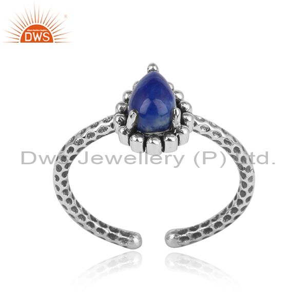 Oxidized Silver 925 Hammer Textured Ring with Lapis