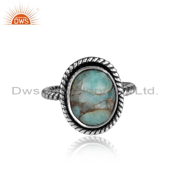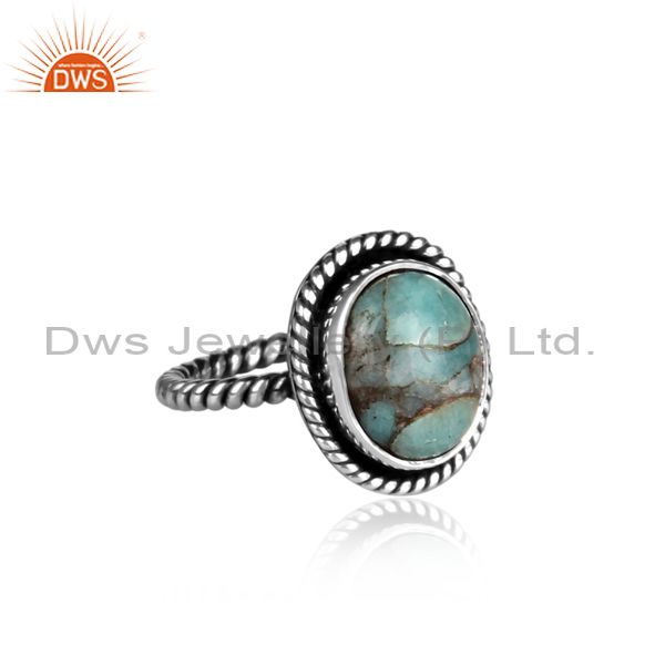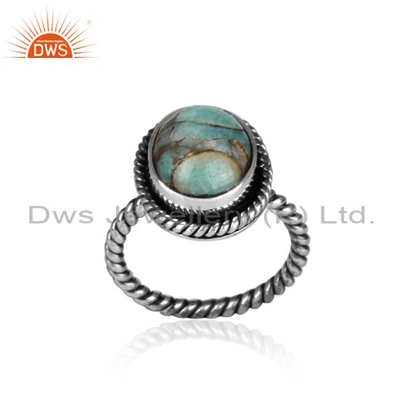 Oxidized Silver And Mojave Copper Amazonite Set Twisted Ring