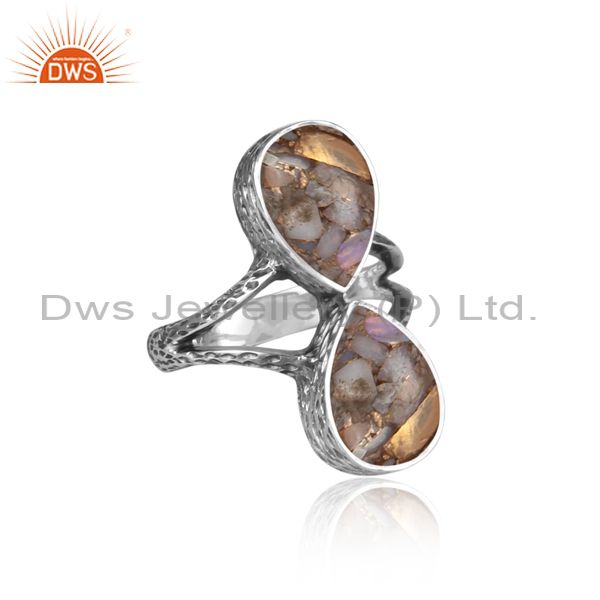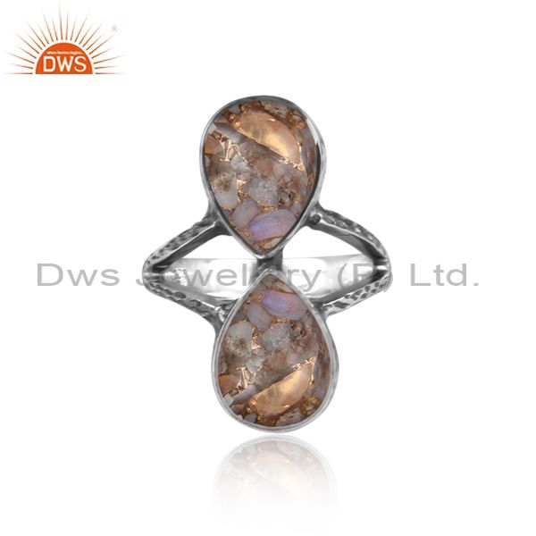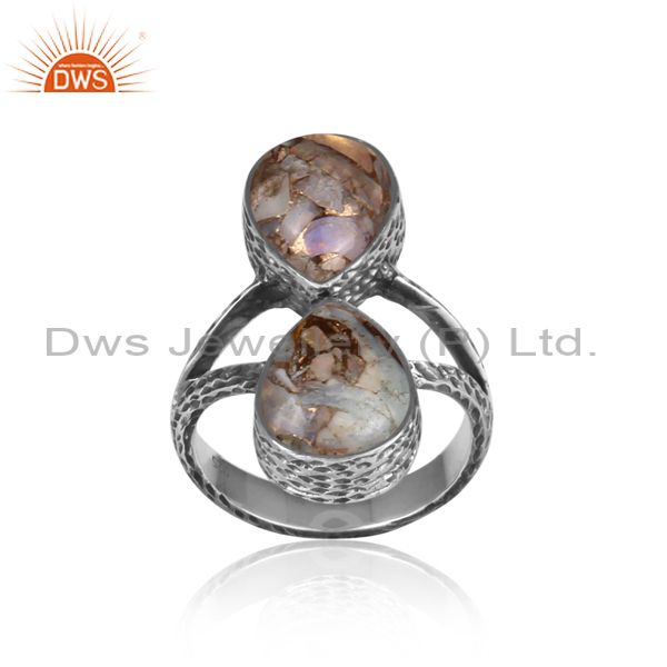 Oxidized Silver And Mojave Copper Ethiopian Opal Set Ring