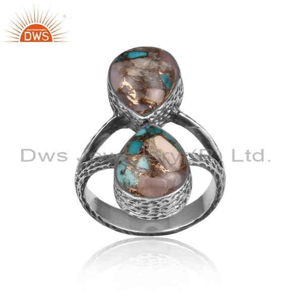 Oxidized Silver And Mojave Copper Pink Opal Turquoise Ring