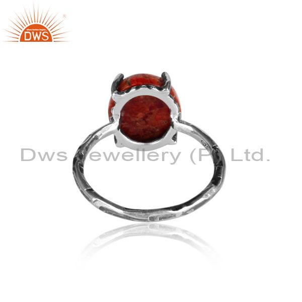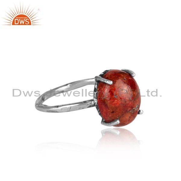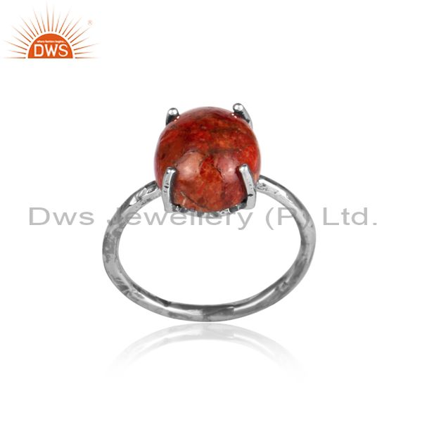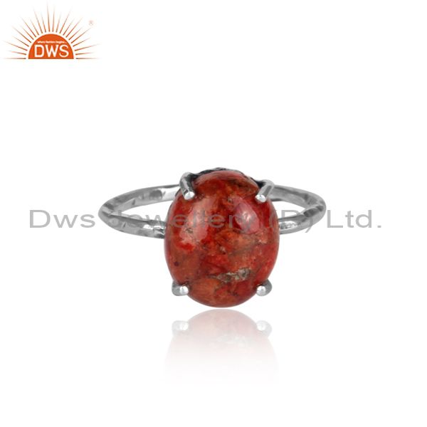 Oxidized Silver And Sponge Coral Set Sterling Silver Ring