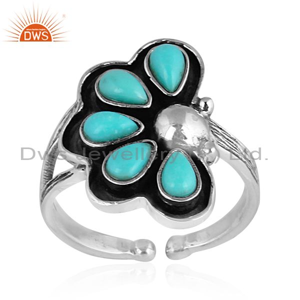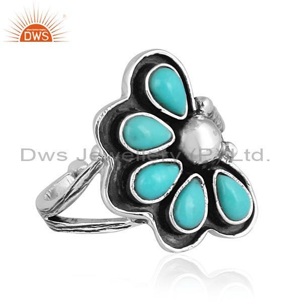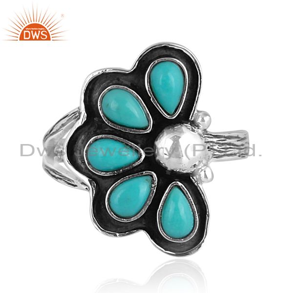 Oxidized Silver Arizona Turquoise Set Floral Statement Ring