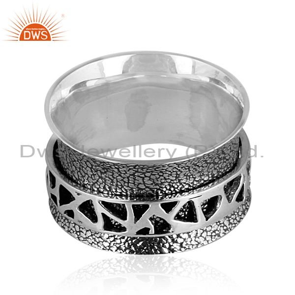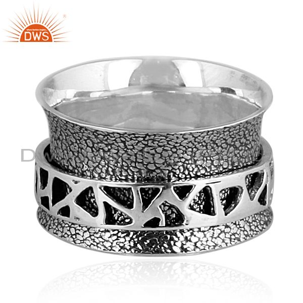 Oxidized Silver Handmade And Handhammered Textured Band Ring