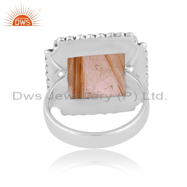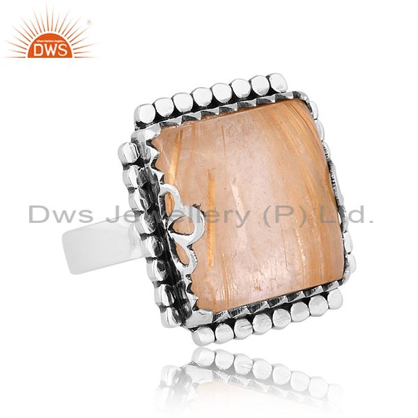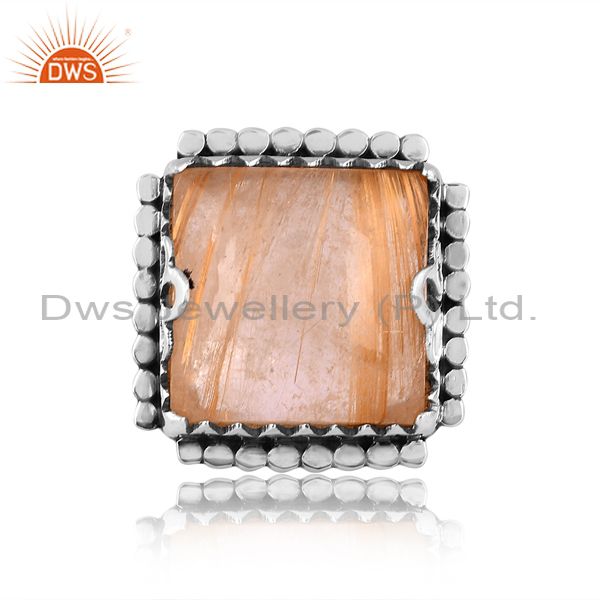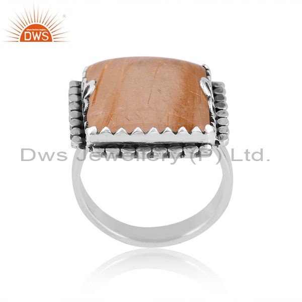 Oxidized Silver Ring With Golden Rutile Cabochon Square