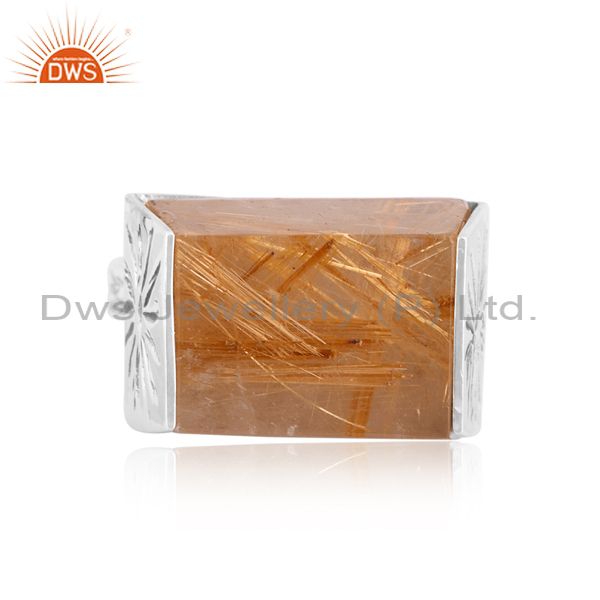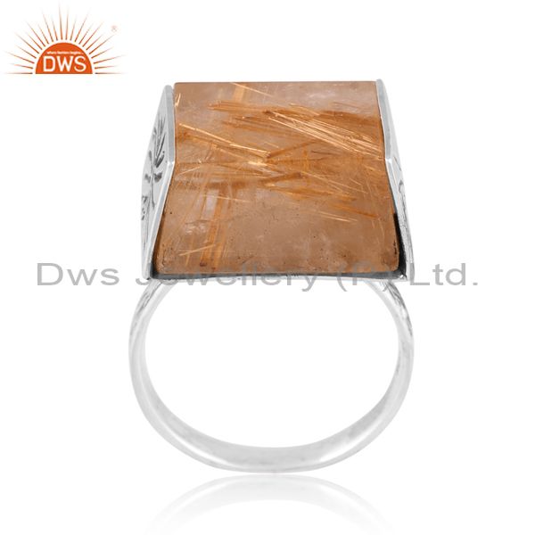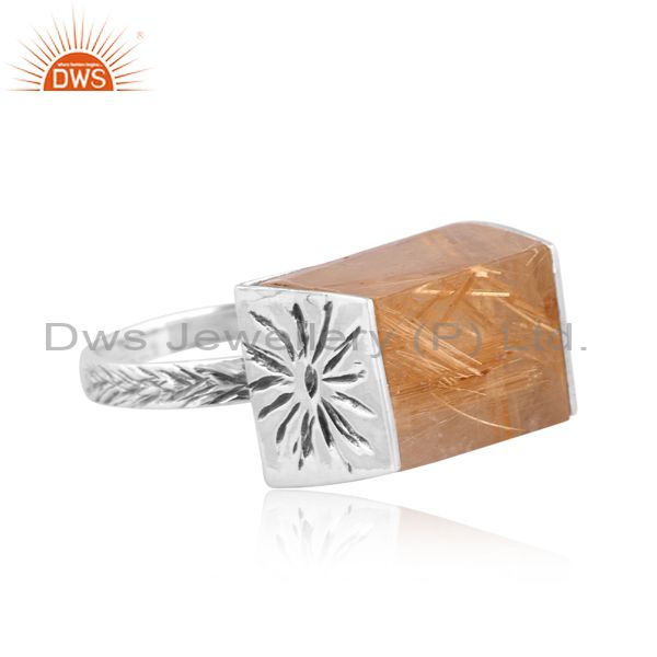 Oxidized Silver Ring With Golden Rutile Coin Taper