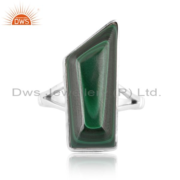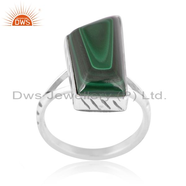Oxidized Silver Ring With Unshaped Malachite Cabochon Gem