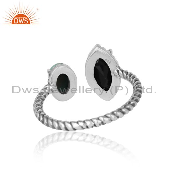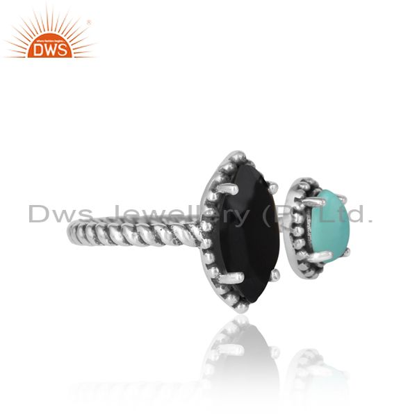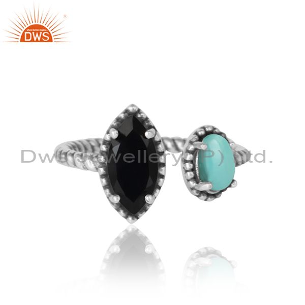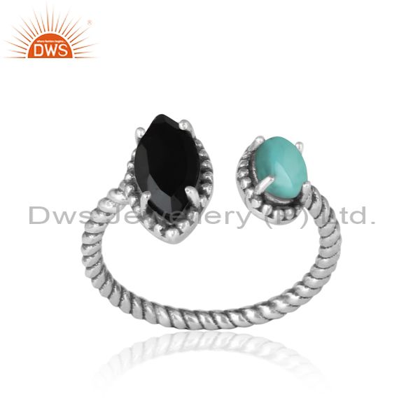 Oxidized Silver Twisted Ring with Black Onyx Arizona Turquiose