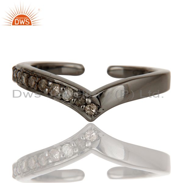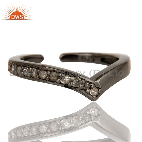 Oxidized Sterling Silver and Diamond Designer Midi Ring