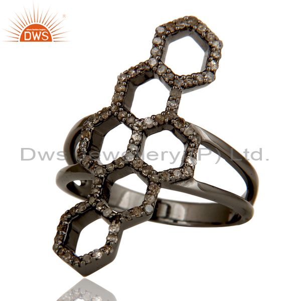 Oxidized Sterling Silver and Diamond Statement Ring Designer Jewelry