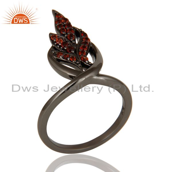 Oxidized Sterling Silver and Garnet Gemstone Ring Beautiful Designer Jewelry