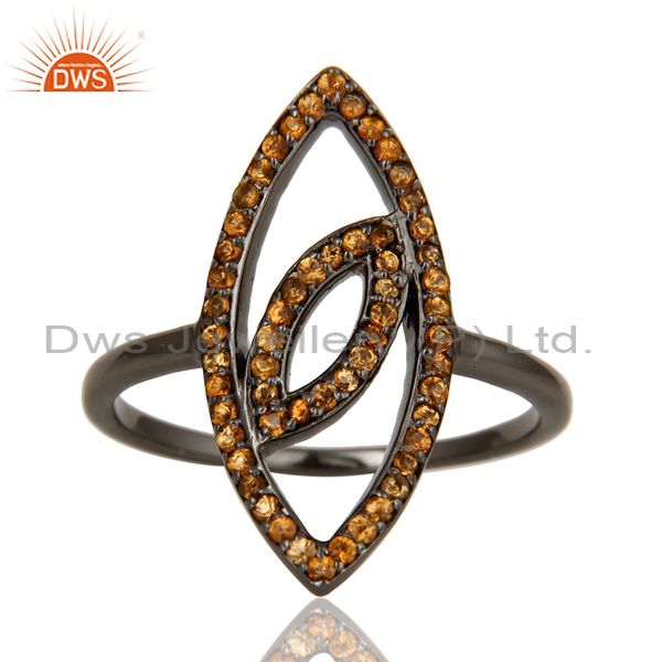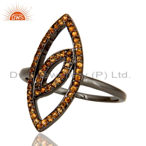 Oxidized Sterling Silver and Spassartite Studded Ring Designer Jewelry