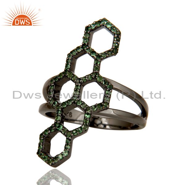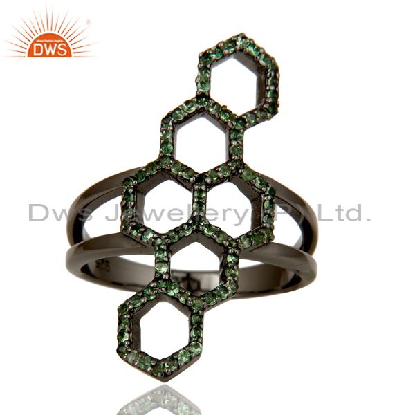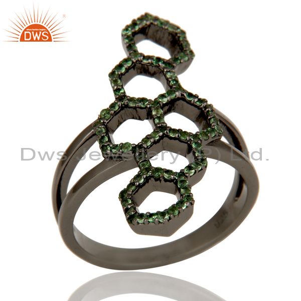 Oxidized Sterling Silver and Tsavourite Statement Ring Designer Jewelry