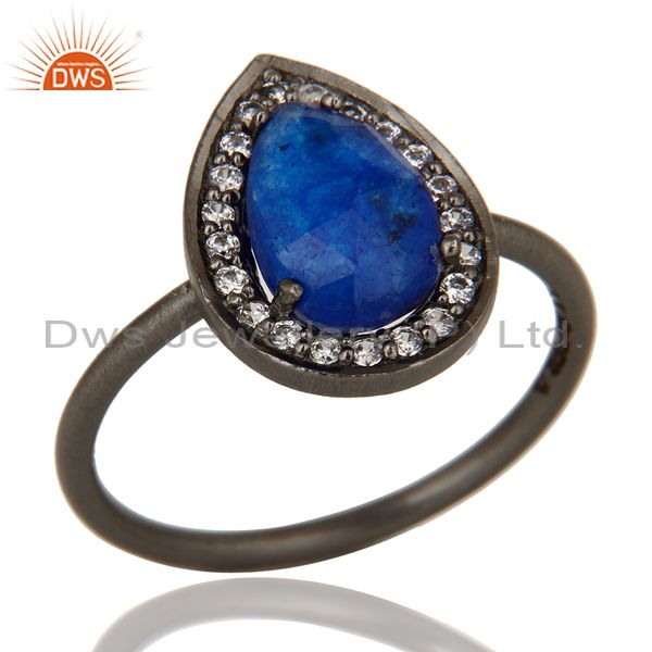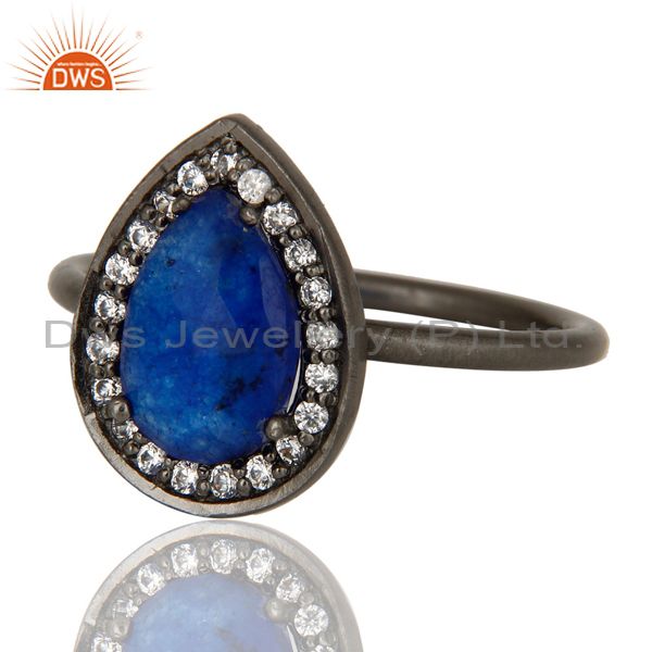 Oxidized Sterling Silver Aventurine And White Topaz Stacking Ring