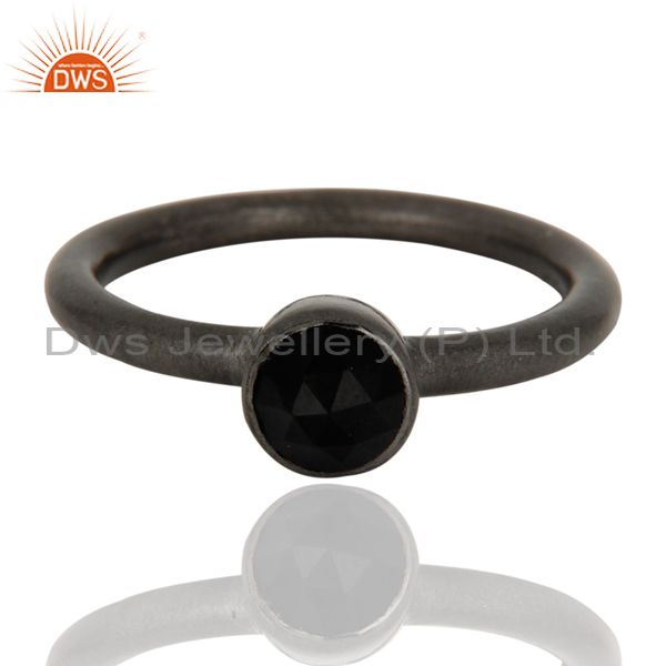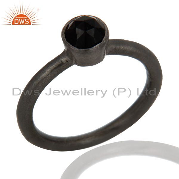 Oxidized Sterling Silver Black Onyx Gemstone Stackable Ring