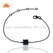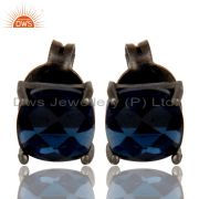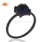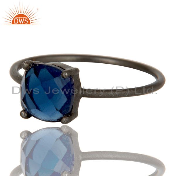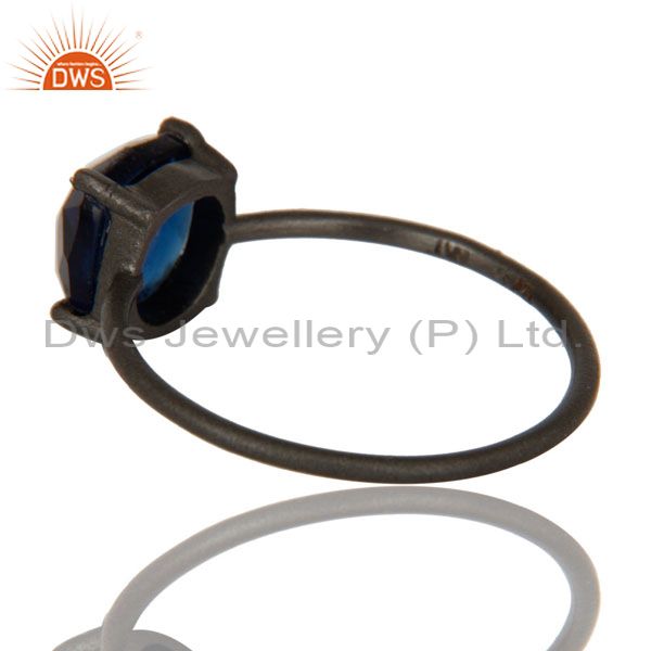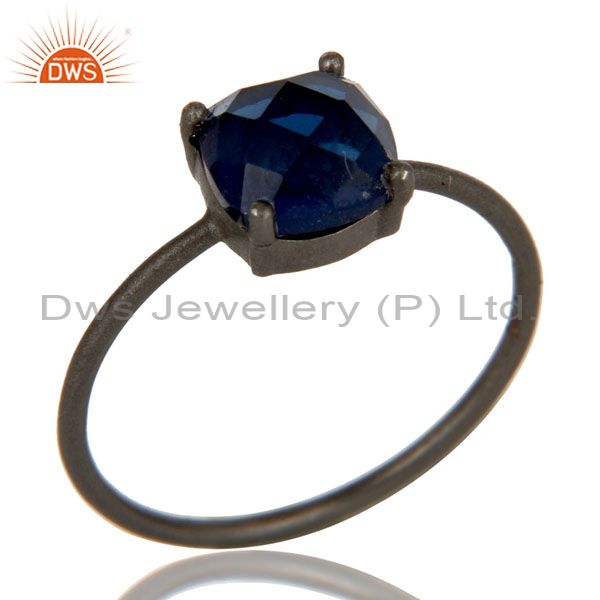 Oxidized Sterling Silver Blue Corundum Prong Set Gemstone Stacking Ring