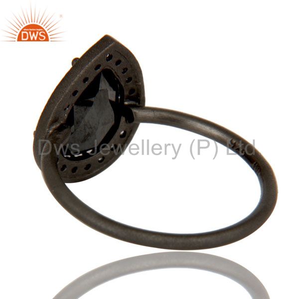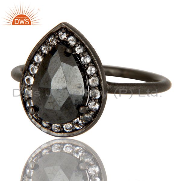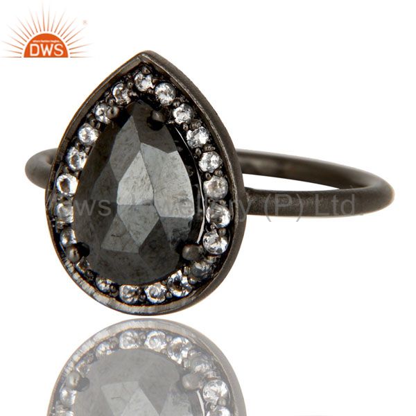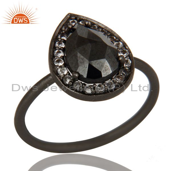 Oxidized Sterling Silver Hematite And White Topaz Stacking Ring