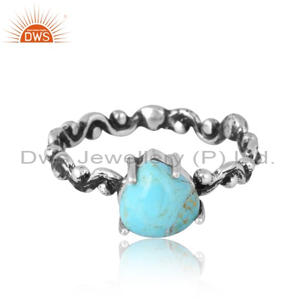 Oxidized Sterling Silver Kingman Turquoise Heart Cushion Ring