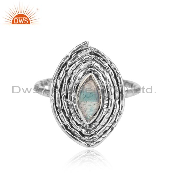 Oxidized Sterling Silver Labradorite Gemstone Designer Ring Jewelry